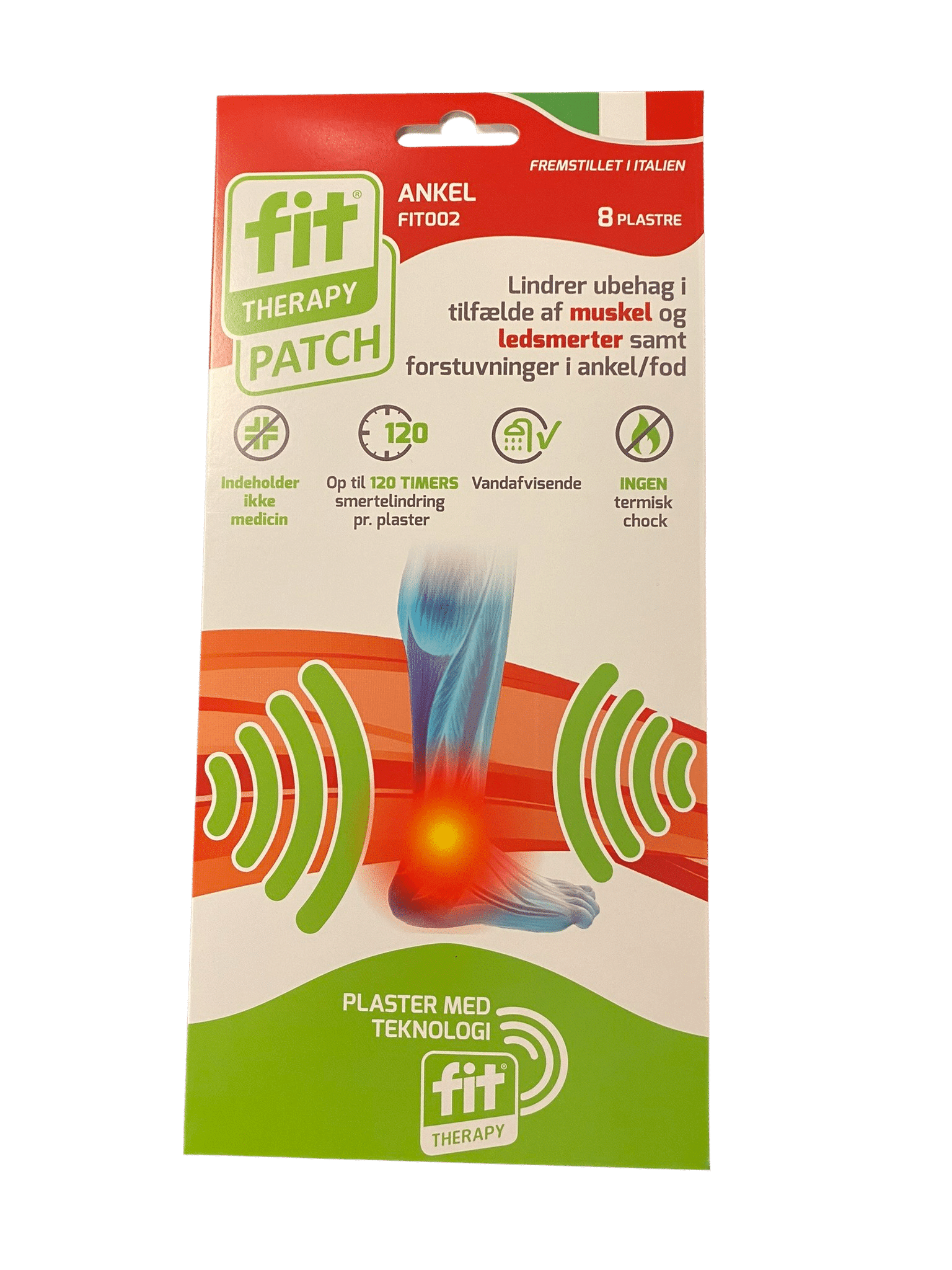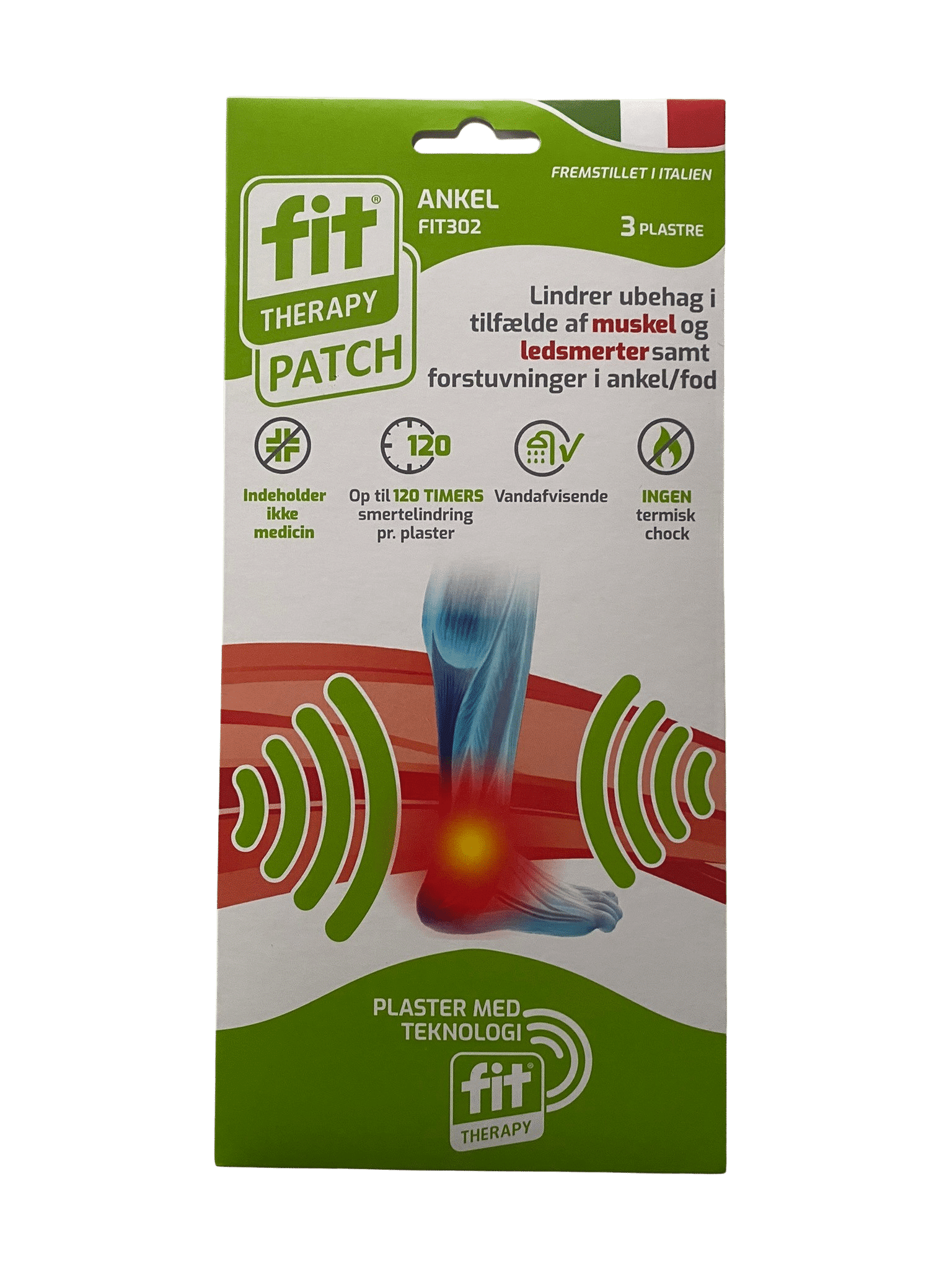 - FIT Patch Ankle för smärta i fotled och hälsena är aktiv i upp till 120 timmar.